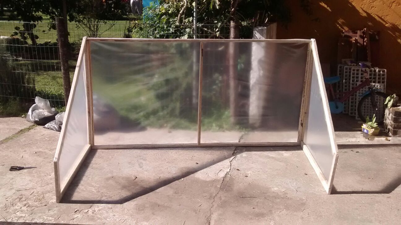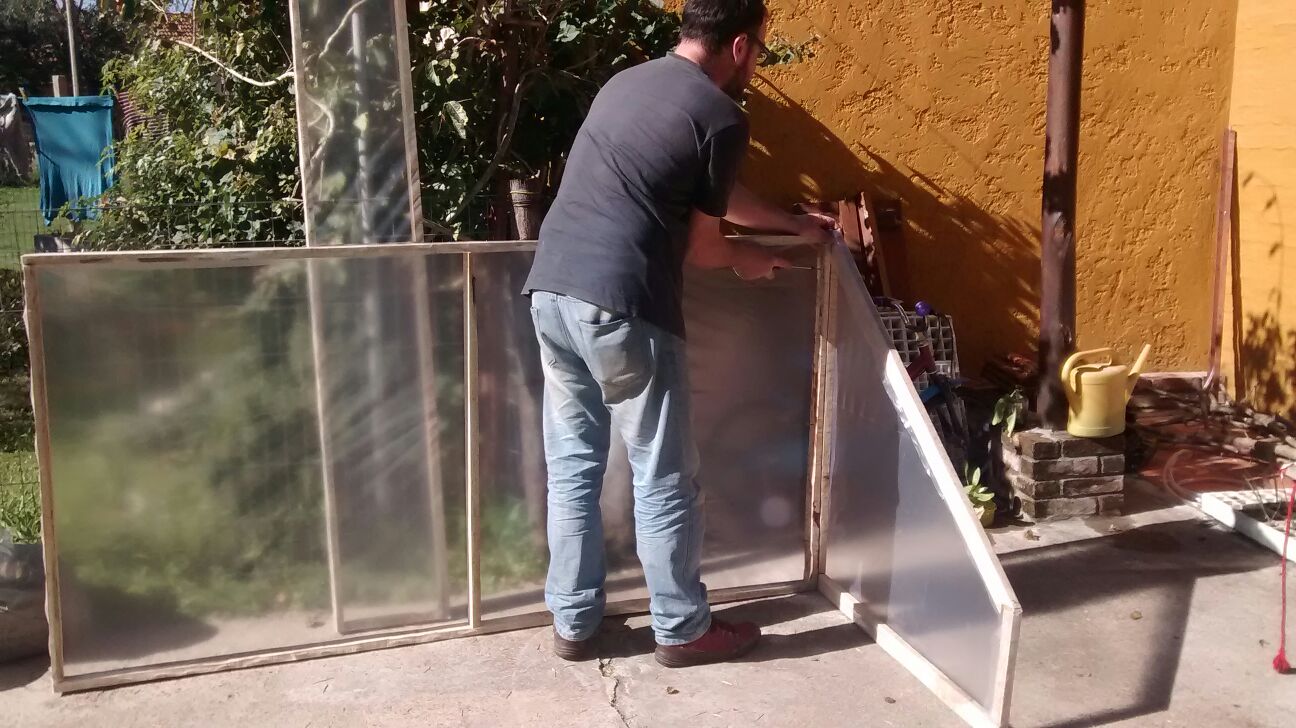 Pensé en un invernadero liviano, fácil de armar y desarmar, porque en verano está bueno desarmarlo y no tener el espacio ocupado con algo que no vamos a usar. Al principio la idea era hacer in invernadero más grande, pegado a la puerta de la cocina. La idea está buenísima, pero requiere una inversión que de momento no es prioritaria. Así que la solución pasaba por hacer un invernadero móvil, más pequeño, para poder iniciar los semilleros temprano.